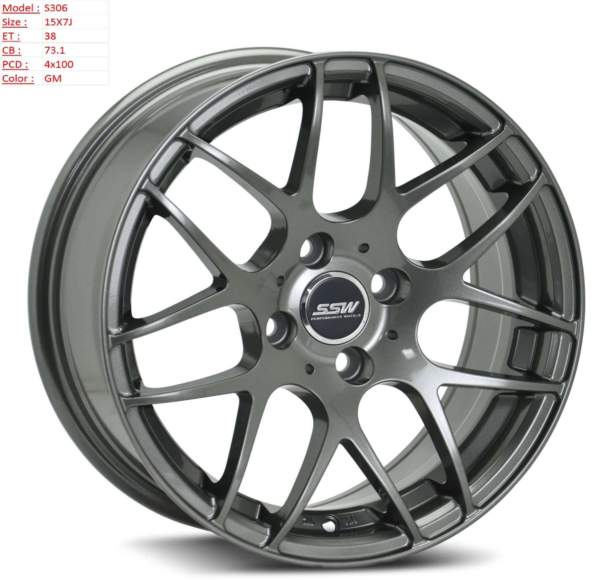 Mâm Lazang Vành SSW 15 inch 4x100 S306-GM